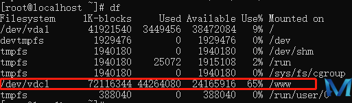 echo "/dev/vdc1 /www ext4 defaults 0 0" >> /etc/fstab
