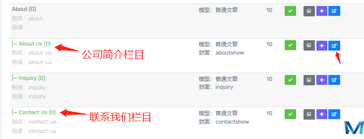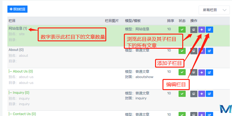 2、添加、编辑栏目