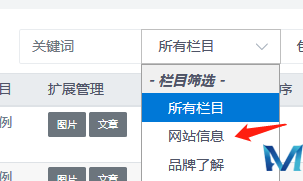 在文章列表页面,选择栏目为“网站信息”或“网站基本信息”的栏目,各个网站对这个栏目的名称或稍有差异。