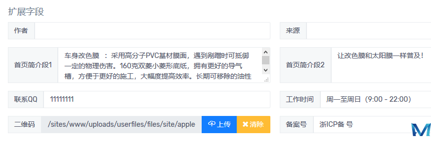 ,编辑扩展字段里的项目即可,每个网站,里面的项目都不同。