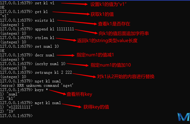 msetnx key1 value1 [key2 value2…]: 批量设置键值对,仅当参数中所有的key都不存在时执行,原子性操作,一起成功,一起失败