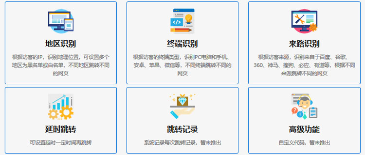 爱米奇网页跳转系统只需要在网页中添加一句JS脚本引用代码,网页即可拥有按自定义规则跳转的功能。本系统目前包含地区识别跳转、终端识别跳转、来路识别跳转、延时跳转功能,以后会根据需求扩展功能。一套系统管理无数跳转网页,后台修改跳转规则,网页即时生效、无...